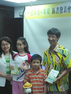 7月14日下午,金石堂信義店五樓聚集了許多書迷、教友以及媒體。向來安靜的書店為何變得如此熱鬧?究竟是哪位當紅作家的簽名會?仔細瞧瞧,坐在前方為書迷朋友們簽名,一身鮮黃、極具非洲風味的身影,不就是巫爸嗎?原來,這天正是尼曼匹克症巫家《一生罕見的幸福》新書發表會! |